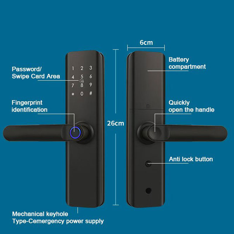 The SF059 keyless smart door lock is designed for easy and reliable deployment in both residential and commercial settings. It connects directly to your building’s electrical supply, providing continuous power for optimal performance and eliminating the need for frequent battery replacements.